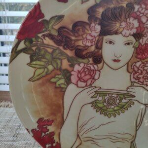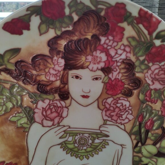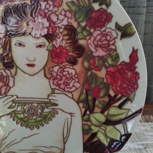 Benaya by Innovation VTG Plate U.K. Hand Painted Art Nouveau Floral Woman 10.5"