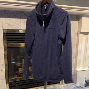 Classic Bench activewear jacket in a dark navy blue heathered knit. This lightly structured full-zip track jacket is perfect for running, hiking, or casual layering without being too heavy.