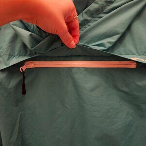 Great teal/blue colour. 2 zipper pockets on the front and one on the back.