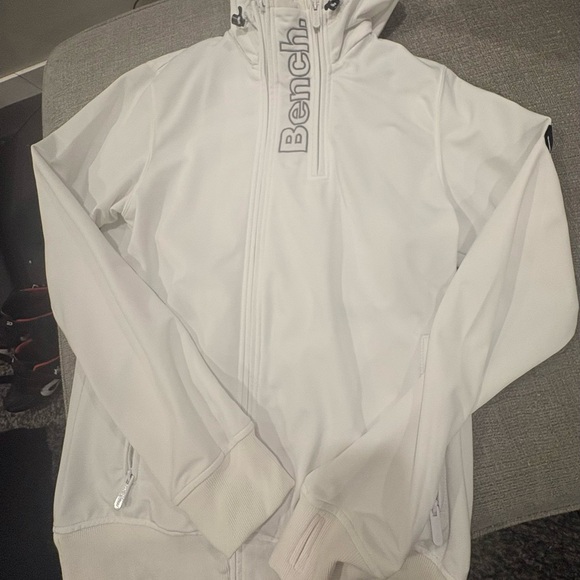Elegant ivory hoodie by Bench. Features ribbed texture and zip closure.