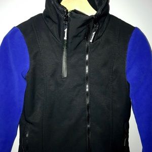 Black with a gorgeous bright Blue Sleeve