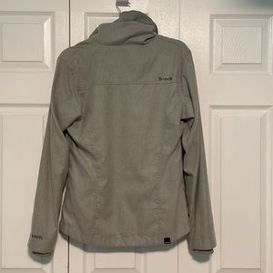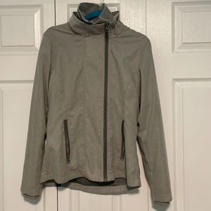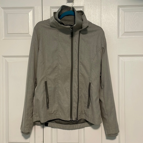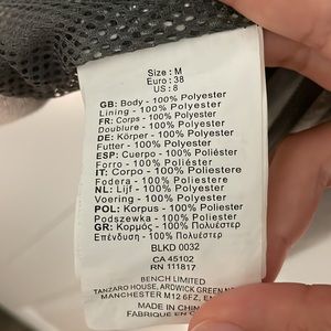 Medium grey bench jacket. It has 2 zippers so you can wear it slightly differently. Like new condition