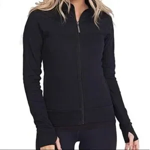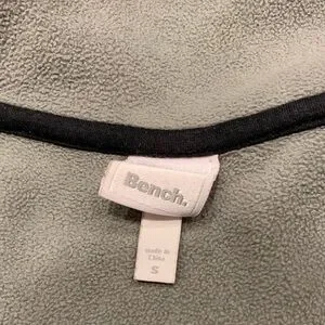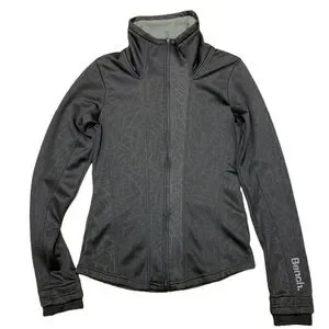 Long sleeve with thumb cut outs zip up black BENCH Jacket. 2 outer pockets.