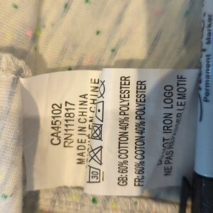 Light blue t-shirt with colorful speckles. Casual and stylish.