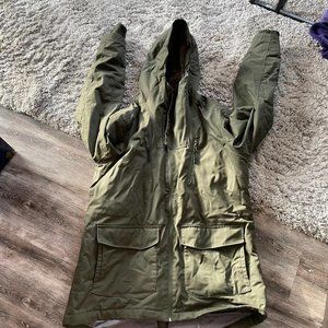This zip-through jacket from Bench is perfect for keeping warm and dry. Internal pocket, cord adjustable and two front patch pockets with two zippered pockets. Very warm for Canadian winters!
