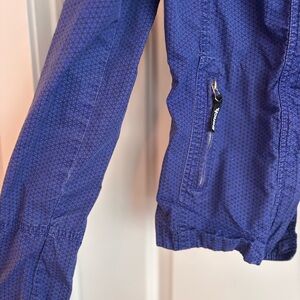 Royal blue lightweight jacket with textured design. Features zip pockets and Bench logo. Hood can be hidden/ zipped in. Fitted, stylish cut. Worn gently a few times. Careful examination shows faint signs of wash and wear, but no pulls, rips or noticeable damage - in overall great if not excellent condition. I love the bold colour. A lightweight jacket like this is great for transition seasons, or a cool summer morning/evening when you just need a light layer. Size small, would likely fit those typically an XS /Small.