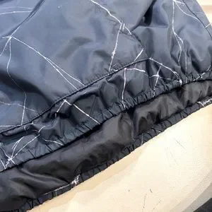 This is a nice lightweight sporty navy blue with a hint of purple detail. jacket that can be used for a ski or out and about. Pouch pocket with snaps and Velcro as well as side pockets. It’s states a large but I find it more for a medium.
