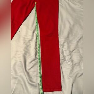Pants are vibrant red. There is a small mark on the back of one leg (pictured). Some thread pulls throughout (pictured).