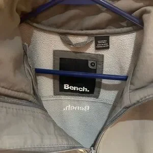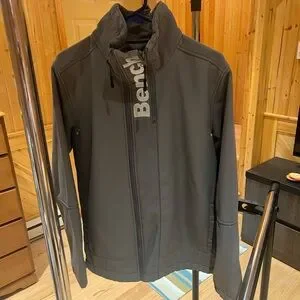 Sleek charcoal jacket by Bench. Features a high collar and front zipper. Ideal for casual wear.