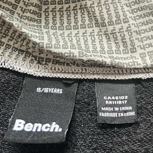 This is a hooded sweatshirt jacket made by Bench. Young man’s size 15/16. Black in colour. Teen outgrew it. Smoke-free home. Perfect for layering in spring/fall. 80% cotton. 20% polyester.