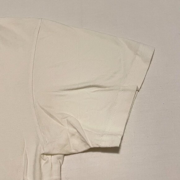 This shirt is pre-owned and in used condition. There are multiple stains on the shirt. And it is very wrinkled due to storage. Please see all photos for exact item.
