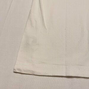 This shirt is pre-owned and in used condition. There are multiple stains on the shirt. And it is very wrinkled due to storage. Please see all photos for exact item.