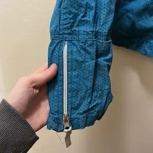 Bench jacket. good folds up into collar blue in colour. good used condition size large