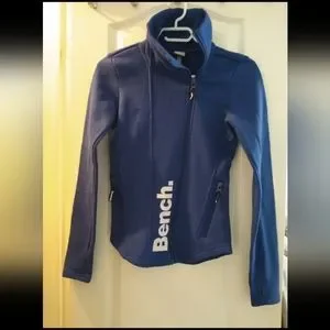 bench sweater with asymmetric zipper and embroidered detail on the front. in excellent used condition. from a pet free smoke free home