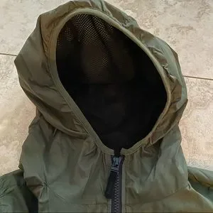 Olive green thin Bench zip up windbreaker jacket. Hoodie. Two pockets. Womens medium. Excellent condition.