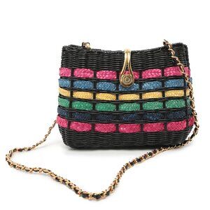 Benchmade Wicker Handbag Purse Woven Straw Chain Strap Black Rainbow Gold Clasp