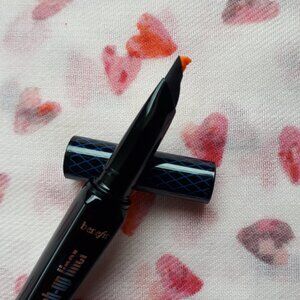 Twist base once to “push up” gel liner to tip. Resting the AccuFlex™ tip on the base of your lashes, slowly guide along your lashline from the inner or outer corner. The angled AccuFlex™ tip works both ways. The new eyeliner will come with the orange plug that prevents any products from spilling out and protects the tip of the pen. :)