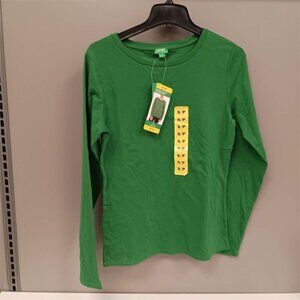 Benetton Green Long Sleeve Shirt Women’s Small NWT Stretch Cotton Casual Top