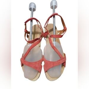 Red/Tan Suede sandal strappy adjustable velcro around toe and around ankle