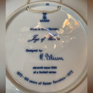 Kaiser Berlin Christmas Plate 1980 Joys of Winter (English Text) designed by H Bluum