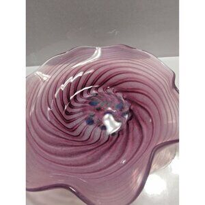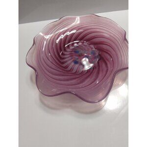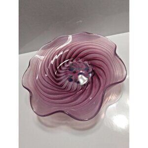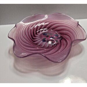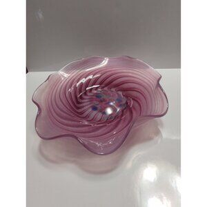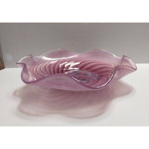 Bermuda Glass Blowing Ltd. Ruffled Edge Swirl Pattern Hand Blown Candy Bowl