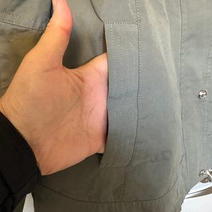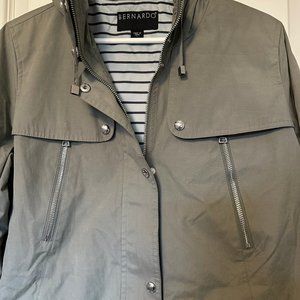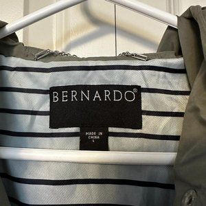 Bernardo raincoat, in size L, green with zip front, hood, wider at bottom.