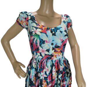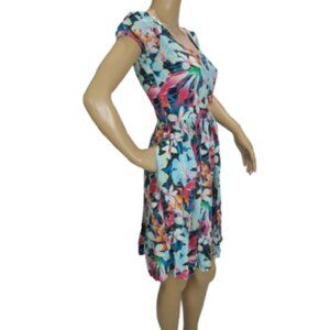 This fun and bright Bernie Dexter summer dress radiates playful energy with its vibrant, colorful flower pattern, perfect for sunny days. Designed with short sleeves for a breezy feel, it features a flattering U-neckline, offering a soft and feminine shape. The dress is crafted with light pleats on the skirt, adding a touch of movement and volume, making it perfect for twirling and enjoying the summer breeze. The zipper back ensures a smooth and secure fit, while the overall design has an easygoing yet stylish vibe. Ideal for casual outings, picnics, or garden parties, this dress combines comfort and charm, offering the perfect balance of fun and elegance for any warm-weather occasion.