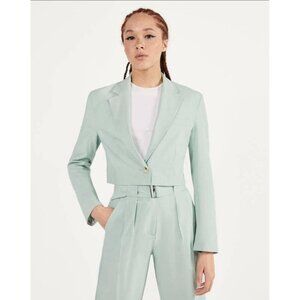 Bershka Blazer Sage Green Classy Cropped Size Small