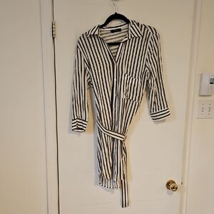 Bershka Midi Shirt Dress Womens S Green white Striped Oversized Belted
