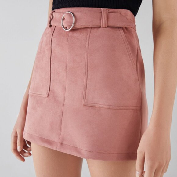 Blush Pink Mini Skirt | Faux Suede with Belt | Excellent Condition
