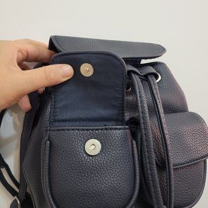 Bershka Small Faux Leather Tiny Navy Backpack
