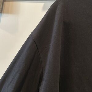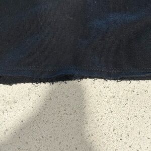 Wrist ties, raw edge hem, ribbed collar. Drop shoulder.
