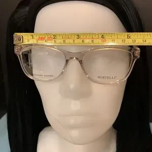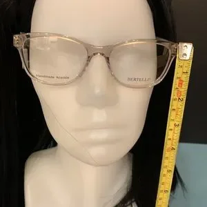 New - tags on. Bertelli handmade acetate frames. Front is clear while arms are Pearl white with some sparkle details Retail $179