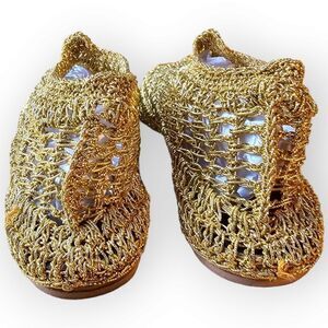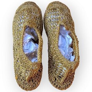 Bertlyn New York Vintage Gold Fabric Stretch Flats