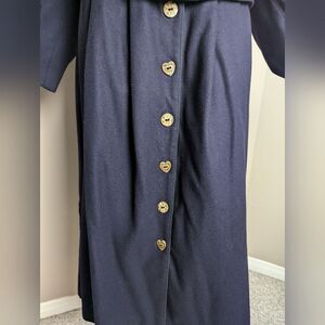 Berwin & Wolff Navy Wool Jacket & Pleated Skirt Set, Heart Buttons, Sz Approx L