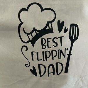 Best Flippin' Dad Apron- great for dad to wear when barbecuing for the family- White apron with 'Best Flippin' Dad' design in black. Perfect for cooking enthusiasts.