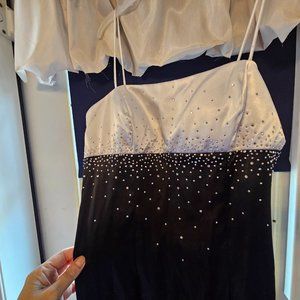 LONG White bust with embellishments with the Black torso to floor length SPAGHETTI STRAP DRESS