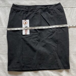 This Betabrand Charcoal Gray Stretch Pencil Skirt is new, with tags. This elegant skirt is designed to flatter your figure while offering comfort and style. The skirt is crafted from a high-quality stretch fabric that allows for a perfect fit and easy movement. The charcoal gray color adds a touch of sophistication, making it suitable for various occasions, from professional settings to social events.