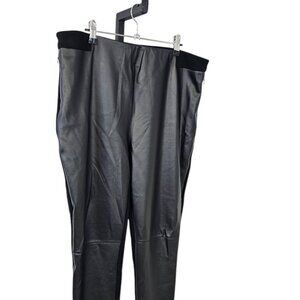 Betabrand Womens Faux Leather Front Stretch Pull On Pants, Black, Size 2XL LONG