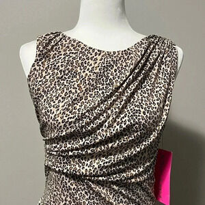 Betsey Johnson Animal Print Ruched Sleeveless Sheath Dress