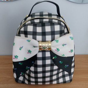 Betsey Johnson Backpack Black and White Gingham Design with Big Rosebud Bow