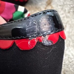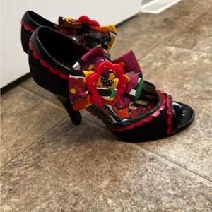 Step out in style with these Betsey Johnson women's shoes. Featuring a striking black and red floral design, these shoes are perfect for adding a pop of color to any outfit. The vibrant floral accents make them a standout choice for any occasion.