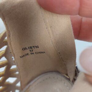 Crystal incrusted Betsey Johnson cut nude color suede booties.
