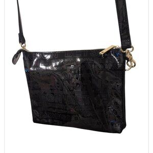 Betsey Johnson Designer Chic Black Patent Leather Retro Flap Crossbody Bag EUC