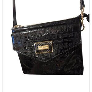 BETSEY JOHNSON Designer Chic Black Patent Leather Retro Flap Crossbody Bag EUC