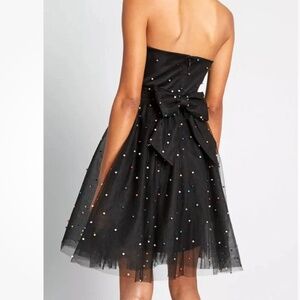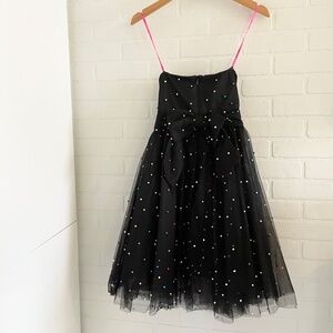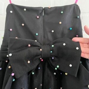 Betsey Johnson Dress Formal Black Rainbow Pearls Tulle layers Strapless Sz 6