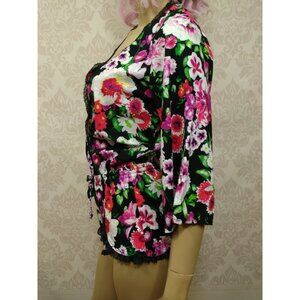 * Betsey Johnson black/pink/purple/green floral romper with lace trim