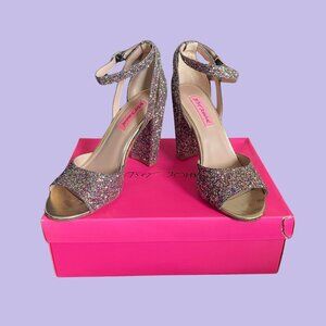 💖 Betsey Johnson ‘Glissten’ Rainbow Glitter Heels | Size 8.5