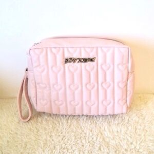 Betsey Johnson large quilted cosmetic/toiletry bag. Color: Light Pink. SIZE: See Description. Features: