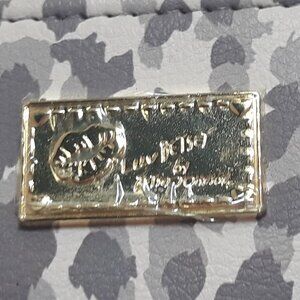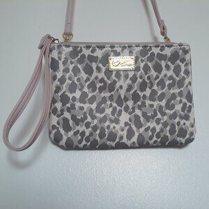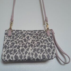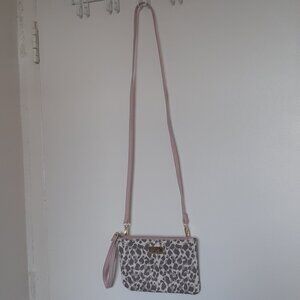 Betsey Johnson Leopard Print Small Crossbody Purse Grey & White w/ Pink Trim